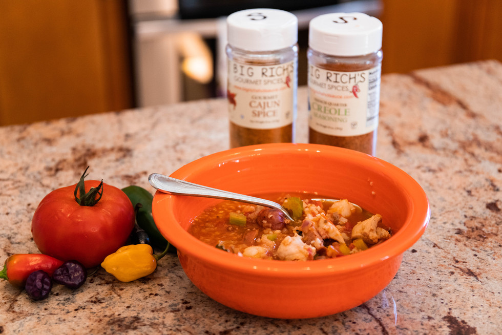 4. Add in the Big Rich's Cajun and Creole spices and stir